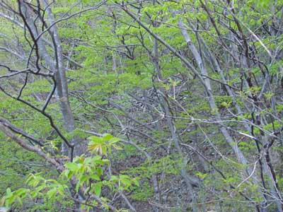 | 栗子山の近くを通る途切れた道が万世大路です |