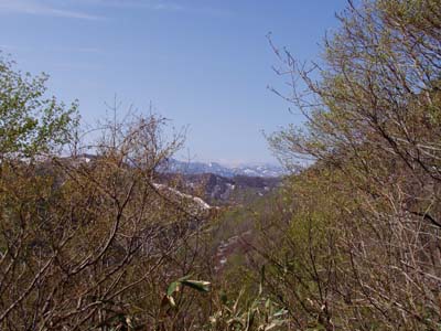 峠へ到着。小休止。 二人して生理的欲求を満たす。まぁ、トイレなんですけど(^-^;; あとは大平集落跡までずっと下りなので自転車を乗り捨てる。 というか一面に残雪が残り、 とても自転車を持ち込めるようには見えなかった。 うーん、いい眺め。 最後の通行不能区間は近い! |