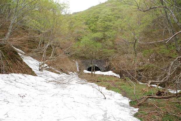 今年は雪解けが早く、隧道は満々と水を湛えていた。