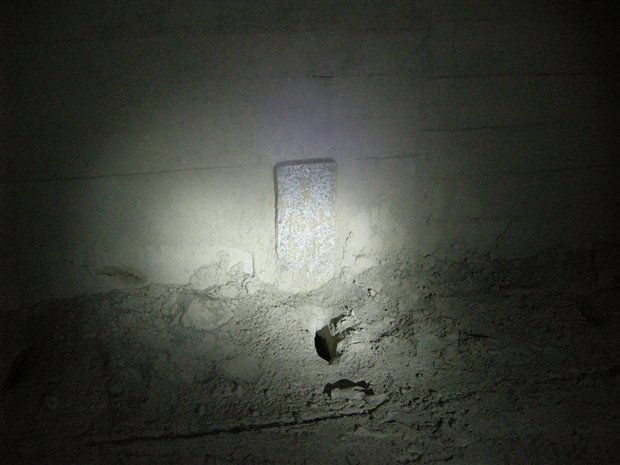あった!縣界標。気を付けて壁を見ていればすぐに見つかる。