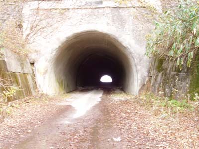 福島側を撮影。どうやらバリケード二つで通せんぼしていたようだ。 内部は、素掘りにただ吹付けをしただけと思われる。ごつごつ。 |