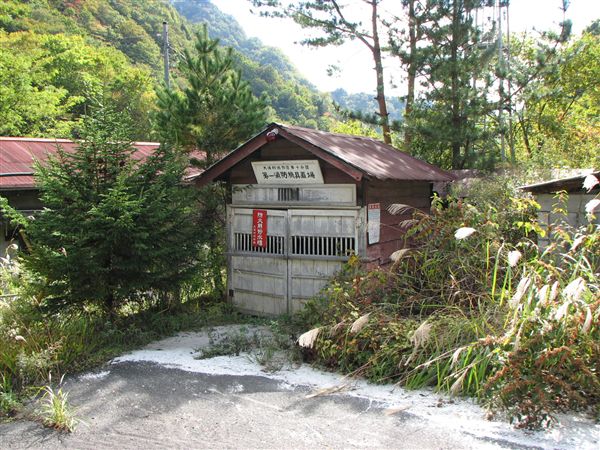 秩父鉱山は戦国時代、甲斐武田氏が採掘したのが始まりと伝えられている。 江戸期には平賀源内も金を求めて入山した。 1937年よりニッチツが柳瀬鉱業所より鉱山を買収し大規模に採掘を始めた。 金・銀・銅・鉛・亜鉛・鉄が採掘されたようだ。 1978年に採算が合わずに金属採掘を止め、以降大幅に規模を縮小し現在も石灰・珪砂のみを採掘している。 これにより埼玉県の金属鉱山は消滅した。 最盛期には標高860mの山中であるのにも関わらず2000人を越える人口を誇り、 ニッチツの用意した共同浴場・社宅・病院・学校・商店も完備、郵便局も存在した。 尚、郵便局は関東で最も到達困難な場所にある郵便局であり、郵政民営化の際にも廃局にならずに存続が決まった。 2006年9月には鉱山街から人が去り、遂に無住の地となった。 現在ではニッチツ事務所の裏にOBの方が犬と独り住んでいるだけであり、小倉沢は人口一人となった。 鉱山街はすでに自然に帰りつつある。 栄華を誇った秩父鉱山の今の姿をお伝えしたい。 ![]() WEB上ではニッチツ鉱山・日窒鉱山等と呼ばれている秩父鉱山へはこのような険路を進んでいく。 すれ違うのは石灰を満載した大型ダンプのみ。カーブでは常に緊張を強いられる。 ![]() 鉱山入口。 見えない張り詰めた空気を感じた。 ![]() 恐らく旧坑への鉱山道路。 進入禁止。入りません。 ![]() さて先へいこう。 ![]() これは! インパクトのある郵便局。 土曜に行ったので閉まっていた。 ![]() 郵政民営化の波にも飲まれず、簡易郵便局として人口一名の小倉沢集落(と呼べるのか)に存在し続けることが奇跡に思えた。 感激しきり。 ![]() 右奥が現在も稼動中の鉱山。 郵便局横はニッチツの事務所となっており、その裏にOBの方が犬と一緒に独り住んでいるようだ。 ![]() 稼動中の秩父鉱山。石灰石と珪砂を産出している。 「今日もゼロ災 言い訳なし」 緊張した空気を感じたのはまだ生きている鉱山だったからか・・・ ![]() 進むとすぐに廃屋が現れる。 これは共同浴場だ。 ![]() 街灯が物悲しい。 ![]() 無住の地になる前はこの板は無かったようだ。 ![]() 新しめの社宅群。 しかし、奥には・・・ ![]() ![]() 歪みながらも何とか体勢を保っている旧社宅。 味がありすぎ。 ![]() カーテンを残したまま去った人もいる。 ![]() プロパンガス用マイコン2ガスメーター。恐らく1988年6月製造。 現在はマイコンSが主流でありマイコン2は滅多にお目にかかれない。 この部屋は平成に入っても人が住んでいたのだろう。 ![]() 売店。 スズメバチが電話保安器の周りをうろうろしていた。 WEB上での情報によると稼動中の自動販売機があったようだが、無住の地となり撤去されたようだ。 ![]() さらに上部には社宅や小中学校、保育園がある。 谷の窮まる処まで鉱山街は広がる。 ![]() おそらく文化会館跡。 ![]() 建てる場所が無くて河原に作ったのか・・・ すでに基礎が沢に洗われて無くなっていた。 ![]() 金山志賀坂林道を少し登って撮影。 この時は夏の台風で土砂災害があり群馬県側へは抜けられなかった。 ライダーが数名来たので二輪なら通れるのだろう。 本当に谷の窮まる処まで家がある。 ![]() 鉱山街最上部で最も目立つ遺構、丹岫寮。(タンシュウと読むか) 丹は古来より赤色を意味し、岫は山の頂を意味することから、恐らく赤岩峠を臨む場所にある建物の意と思われる。 ![]() あるきタバコは やめましょう ![]() 寅さんが出てきそうだ。 ![]() あの頂は1532m峰であろうか。 空が美しい。 ![]() 奥に見えているのが大滝村立鉱山保育園跡。 スズメバチがいたので立ち入らず。 ![]() またまた・・・ あるきタバコはやめましょう ![]() つい最近まで使っていたと思われる自転車が放置されていた。 新聞受けには新しいテプラが貼ってあった。 本当に去年まで人がいたんだ・・・ ![]() 庭の草木は手入れする人もなく伸び放題。 ![]() 主の居ない家に入る気はしない。 いつまで積雪に耐えられるのだろう。 ![]() 大滝村消防団第十分団 第一消防機具置場 ![]() 雄雄しい赤岩峠。 いつか登ってみたい。→いってきました! さらば秩父鉱山街、また会おう。 ![]() 帰りに気付いたのだが、道が大きく陥没していた。 おそろしや・・・ |