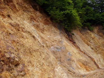 | 目の前で次々落石が起きます。 パラパラ、ガラガラガラ・・・ドスッ。 安易に崖に近づけません。 |