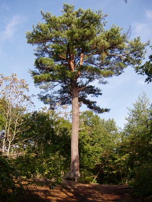 ![]() 福舟峠の脇にぽつんと生える松。 鉱山に向かう人々、長沢駅に運ばれる鉱石、 松はこの峠の栄枯盛衰を静かに見守ってきたのだろう。 |
