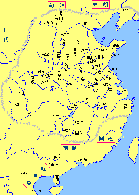 | 高祖劉邦が身罷った後、呂后が実権を握った。 ある時、鉄の流通を管理する役人が、 「南越国境の関所で、鉄の交易をするのは今後禁止して欲しい。」と呂后に願い出、認められた。 趙佗はそれを聞いて、「高祖はわしを南越王として認め、使者の往来や交易を認めた。 しかし呂后は告げ口を取り上げ、蛮地を差別し交易を壟断した。これは長沙王・呉右(四代目)の謀略だ。 やつは交易を独り占めして利益を貪るつもりだ。そして中国を後ろ盾として南越を滅ぼし、 併合して支配下に置き、すべて自分の手柄にするに違いない。」と大いに怒った。 そして、南越の武帝と勝手に名乗り、長沙国との国境に猛攻を加え、痛烈に長沙兵を打ち破った。 長沙王・呉右は、都に急使を送り援軍を求めた。 朝廷は騒然となった。南越討伐には隆慮侯周竈(しゅうそう)が向かうこととなった。 周竈は劉邦挙兵から従い、呂后にも馴染みが深い人物でもあり、また有力な侯(次位は34番目)でもあった。 周竈軍は結局、長沙と南越の国境を越えることは出来なかった。 長沙国ですら暑さと湿気の酷い所で、南越に向かう前に兵士の間に疫病が流行してしまい、 国境である峻厳な山脈を越えることはできなくなってしまったのである。 仕方なく周竈は国境に威圧を加えるだけに留め、一年余りそこに滞陣せざるをえなかった。 そうこうしているうちに、呂后が死んでしまった。そして周竈はここぞとばかりに軍を退いてしまった。 趙佗もすかさず、 それらをあっという間に支配下に置いてしまった。 これで南越の勢力範囲は東西一万里にわたり、漢帝国の脅威となった。 趙佗は中国の皇帝と同じように幌の裏に黄色の絹をはった「黄屋車」に乗り、 命令書には「みことのり」を意味する「制」の字を使った。 趙佗は、老いて益々盛んであったのだ! |